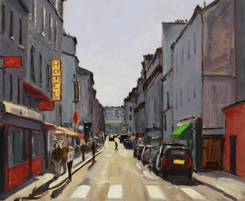 Rue Daguerre vers l’avenue du Maine, huile, 8F (46 x 38 cm)