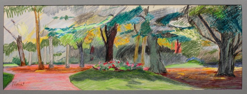 Jardin Vauban à Lille, crayons de couleur, 39 x 14 cm