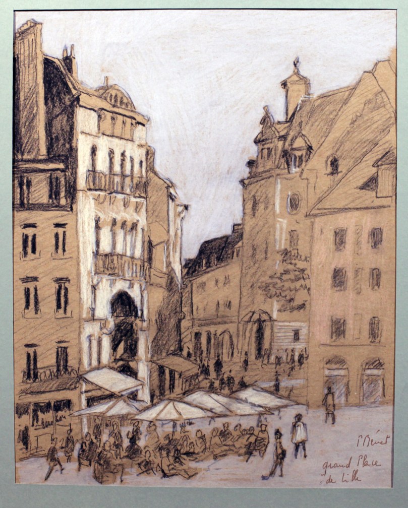 Lille, Grand Place, 33 x 27 cm, pierre noire et crayons de couleur