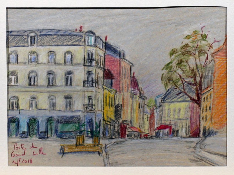 Porte de Gand à Lille, 23 x 17 cm, crayons de couleur