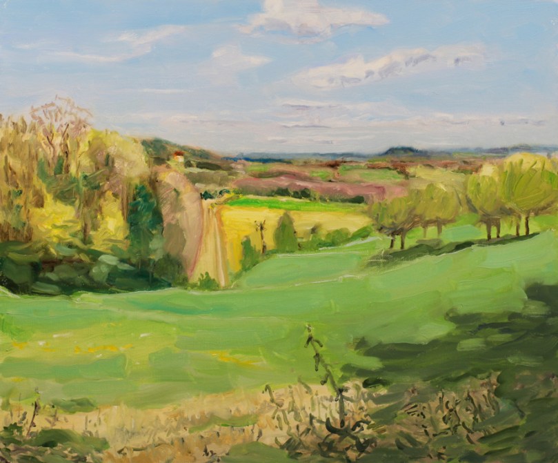 Au bout de la façade de l’esplanade à Lille, on aperçoit des petits jardins protégés par une haie vive buissonnante. Ce sont » les jardins du petit Paradis », jardins familiaux et d’agrément, gérés par une association. J’ai eu la chance d’être invité à y entrer, ce qui m’a permis de réaliser cette peinture fin juillet. On devine que chaque parcelle avec son petit cabanon bricolé est un petit Paradis pour son jardinier, l’ensemble est foisonnant, hétéroclite et plein de poésie, j’aime beaucoup. J’essaierai de revenir en hiver.