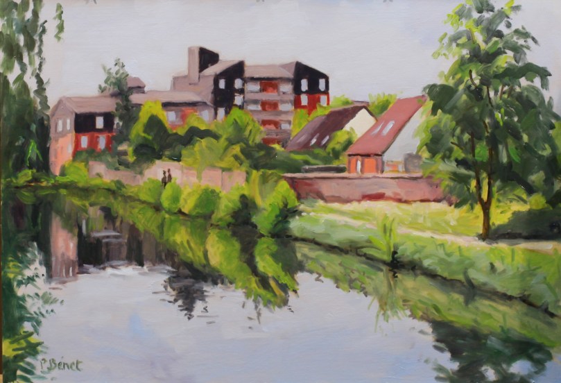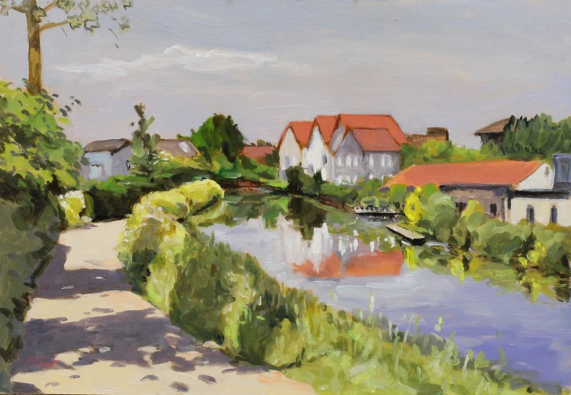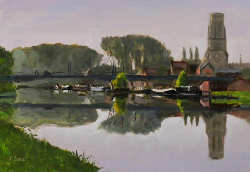 Les bords de la Deûle permettent de bonnes promenades à pieds ou à vélo, dans des paysages plutôt périurbains comme ici le village de Wambrechies au matin d’une journée d’été . C’est dans la vallée de la Deûle, zone marécageuse, que la ville de Lille (L’Isle en ancien français) s’est autrefois établie et plusieurs bras de la rivière parcouraient la ville.