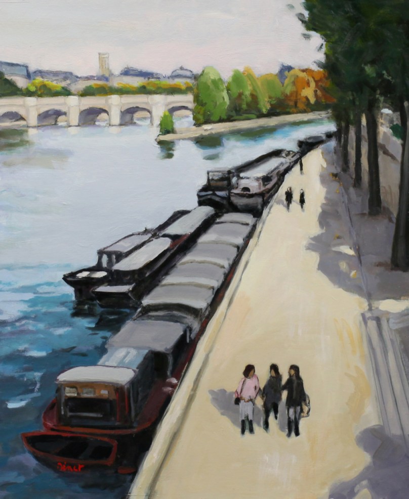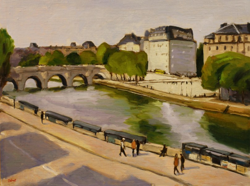 Je me suis rendu compte en rangeant que j’avais fait 2 versions pour la plupart de ces tableaux des quais de Seine…