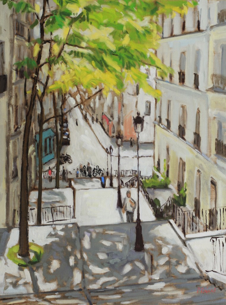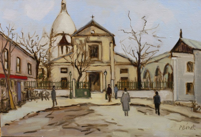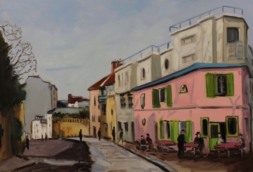 Cette petite rue a été peinte par plusieurs artistes dont Maximilien Luce et Utrillo. J’ai peint la vue encadrée d’après une photo que j’avais prise il y a quelque temps, c’est à peu près le même paysage qu’Utrillo. Pour la tableau ci-dessous, je suis parti d’une photo ancienne en noir et blanc