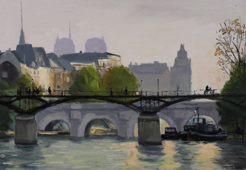 Pont des arts et les tours de Notre Dame, huile, 8P (46 x 33 cm) Prix 270€