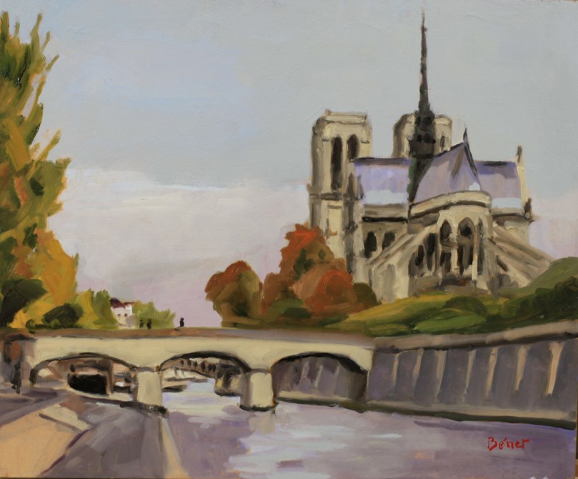 J’aime bien peindre Notre Dame, car ses deux tours font partie de la représentation iconique de Paris.